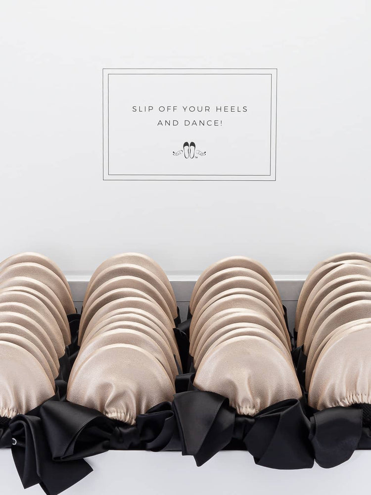 • 20 pairs of premium Rescue Flats each wrapped with a satin ribbon: 5 Small, 10 Medium, 5 Large