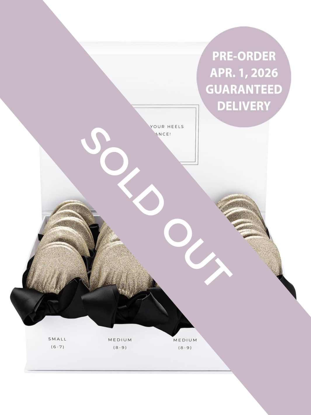 - 20 pairs of premium Rescue Flats each wrapped with a satin ribbon: 5 Small, 10 Medium, 5 Large