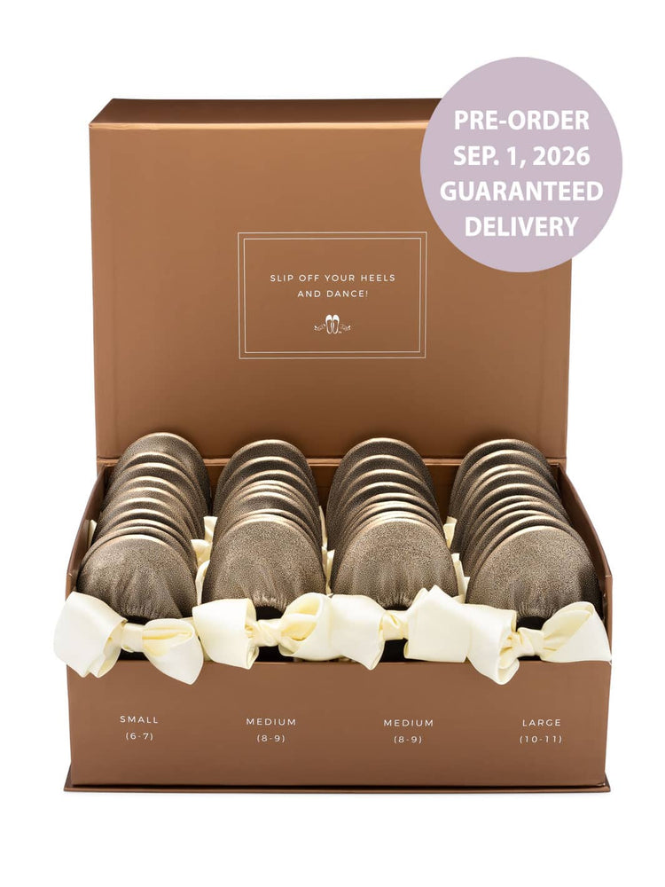 2026 September Pre-Order - 20 Pairs of Champagne Glitter Rescue Flats (Rose GOLD Display Box)
