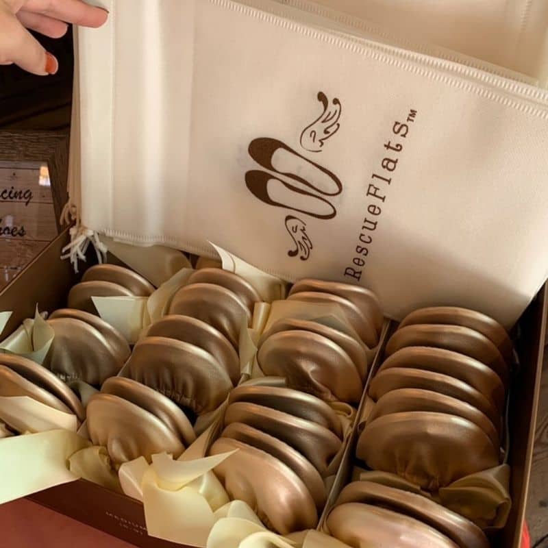 - 20 pairs of premium Rescue Flats each wrapped with a satin ribbon: 5 Small, 10 Medium, 5 Large